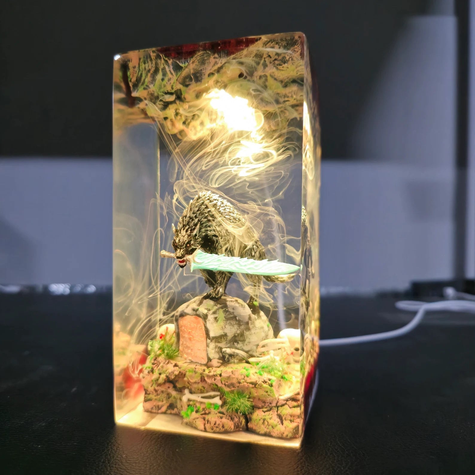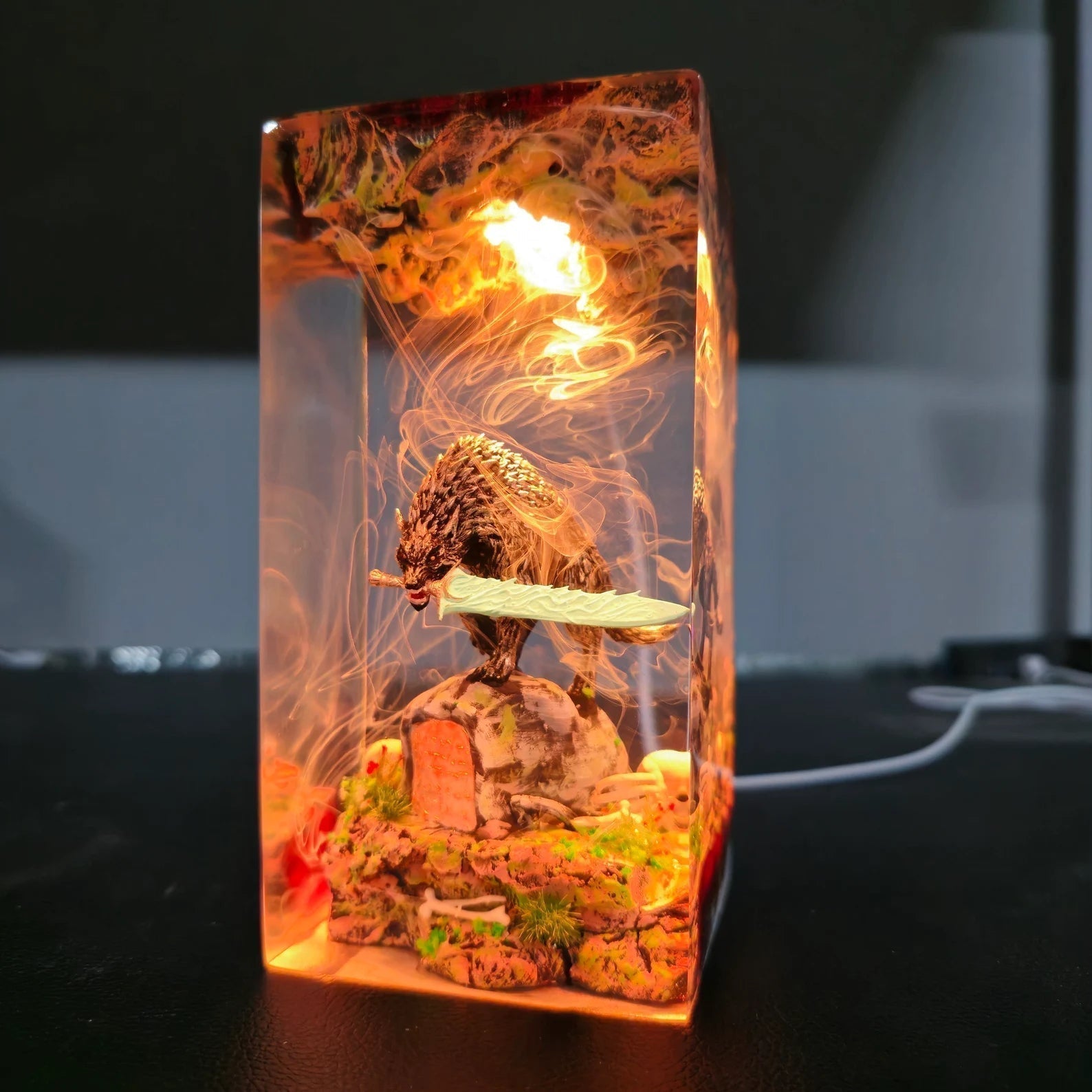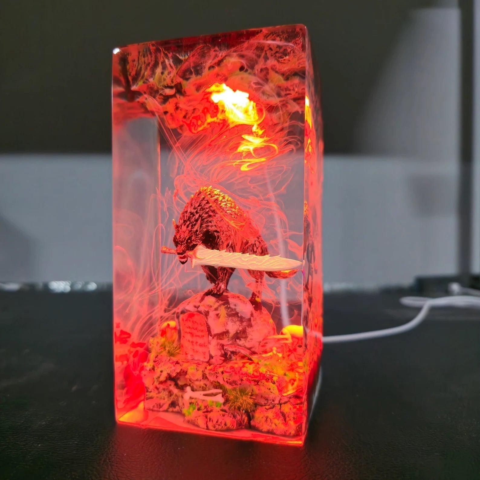 Diese Lampe vereint Kunst, Design und Atmosphäre. Das warme LED-Licht betont die Tiefe des Epoxidharzes und bringt jedes Detail zum Leuchten – perfekt für Wohnzimmer, Arbeitszimmer oder als besonderes Geschenk für Fans und Sammler.