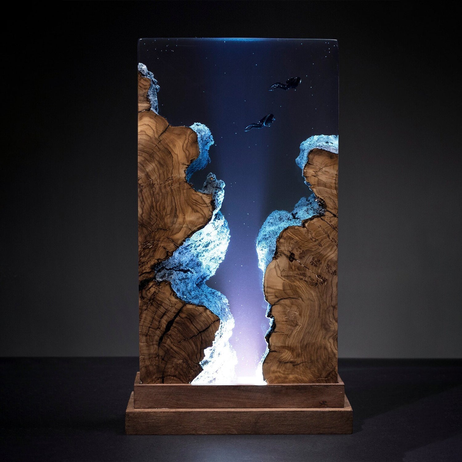 Diese Lampe vereint Kunst, Design und Atmosphäre. Das warme LED-Licht betont die Tiefe des Epoxidharzes und bringt jedes Detail zum Leuchten – perfekt für Wohnzimmer, Arbeitszimmer oder als besonderes Geschenk für Fans und Sammler.
