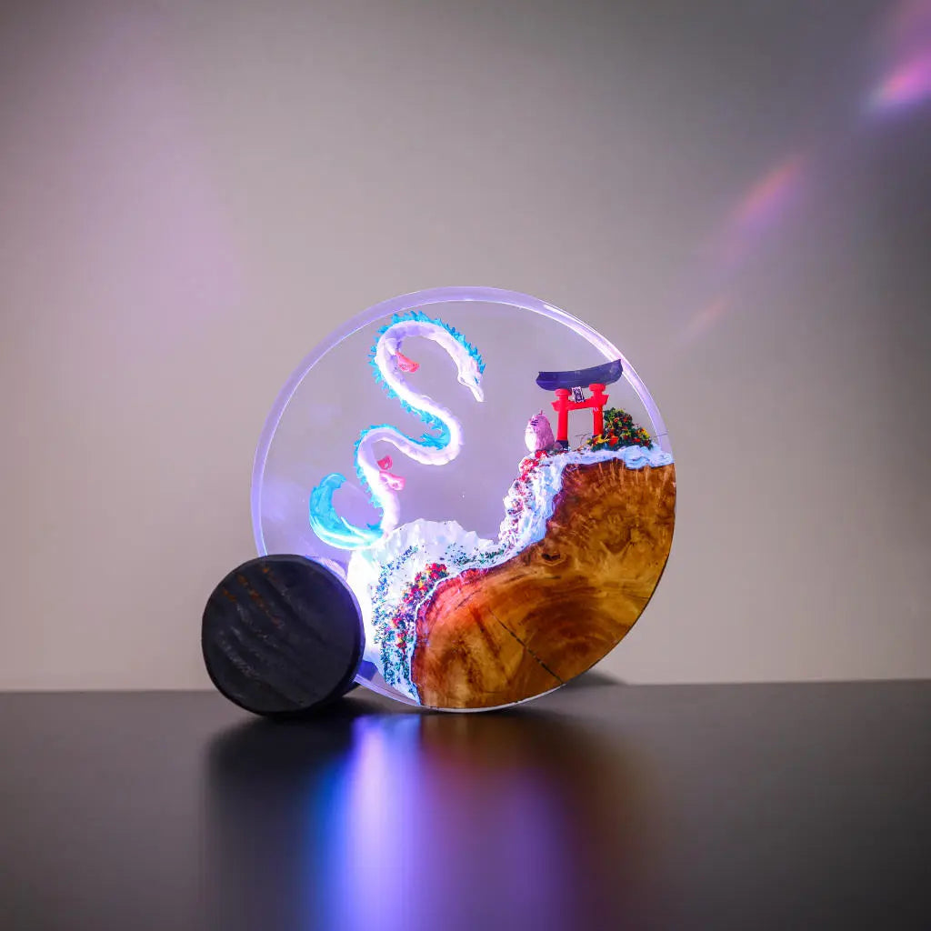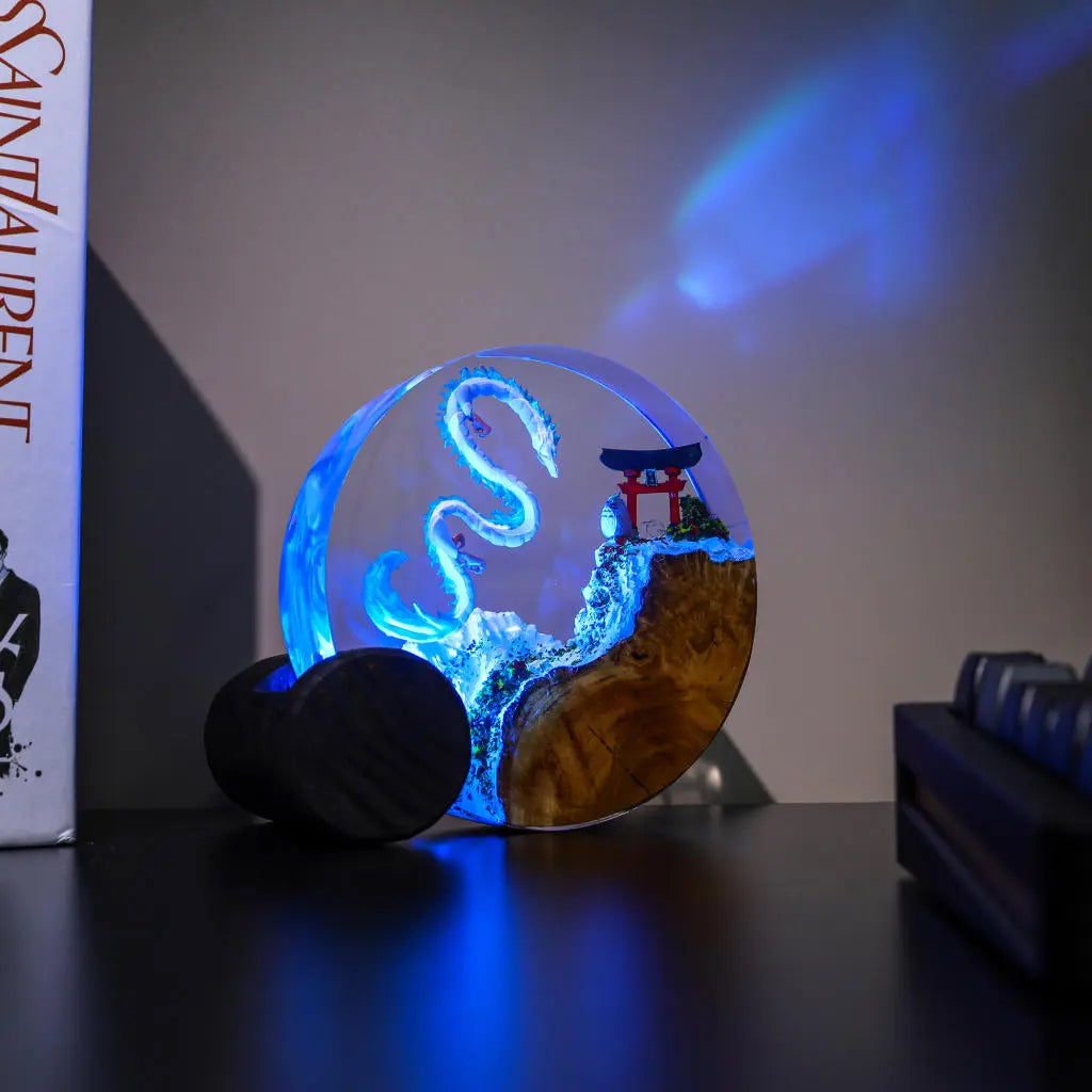 Diese Lampe vereint Kunst, Design und Atmosphäre. Das warme LED-Licht betont die Tiefe des Epoxidharzes und bringt jedes Detail zum Leuchten – perfekt für Wohnzimmer, Arbeitszimmer oder als besonderes Geschenk für Fans und Sammler.