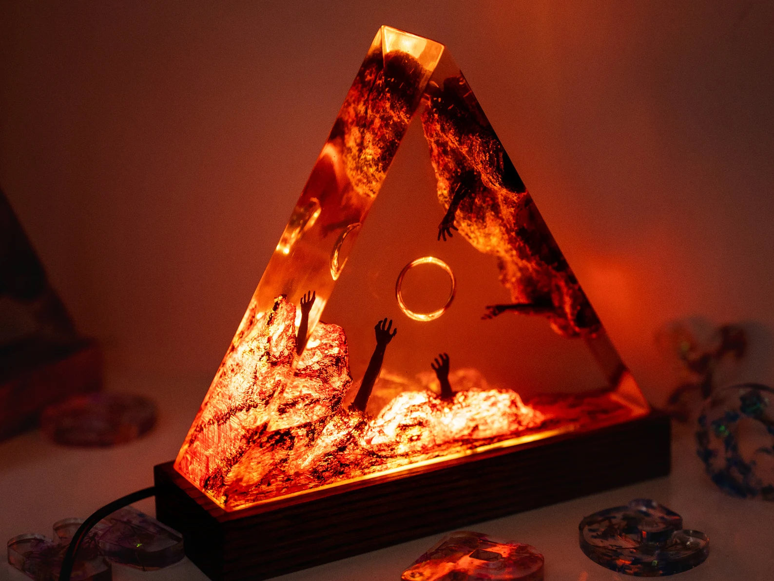 Diese Lampe vereint Kunst, Design und Atmosphäre. Das warme LED-Licht betont die Tiefe des Epoxidharzes und bringt jedes Detail zum Leuchten – perfekt für Wohnzimmer, Arbeitszimmer oder als besonderes Geschenk für Fans und Sammler.
