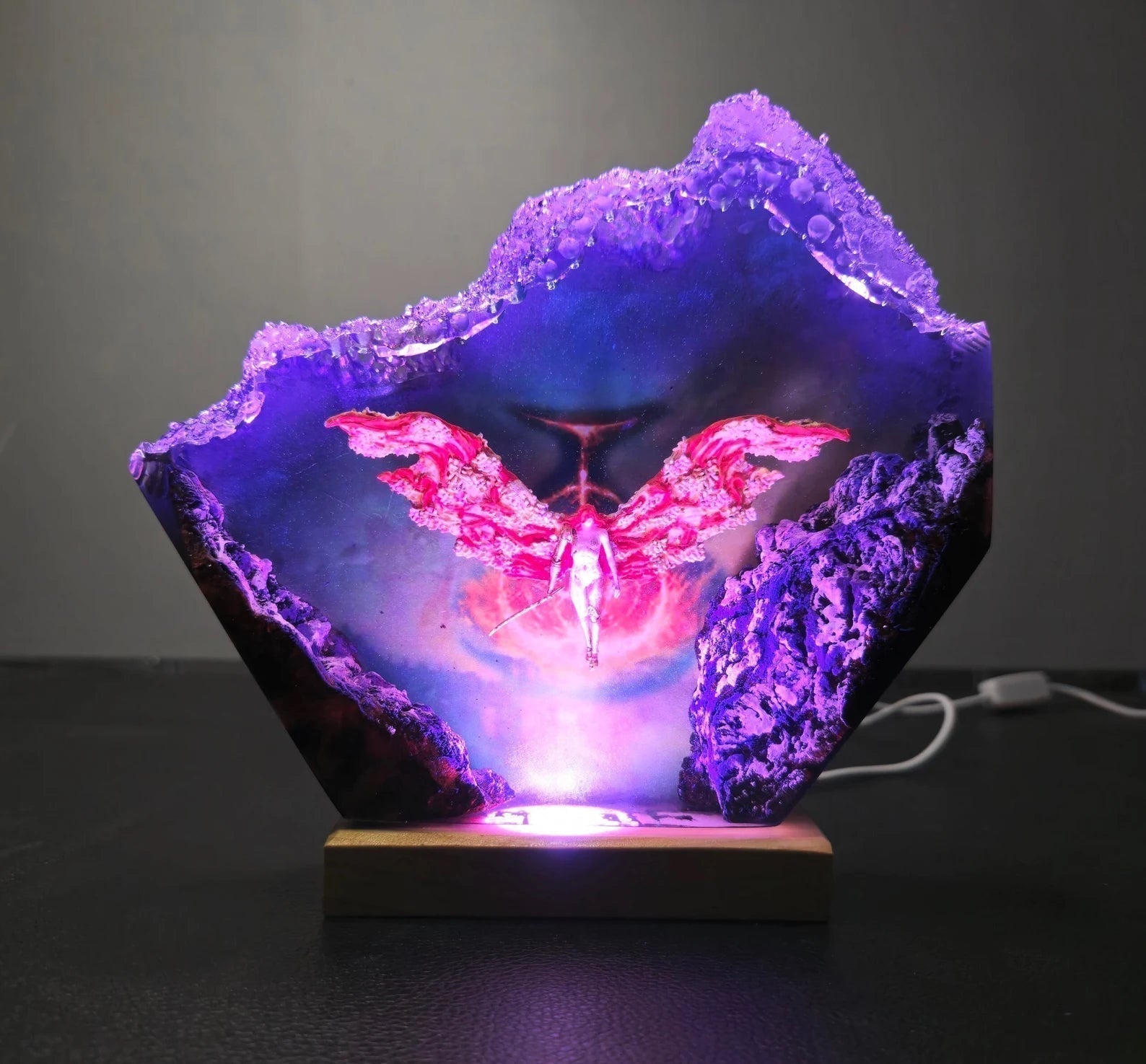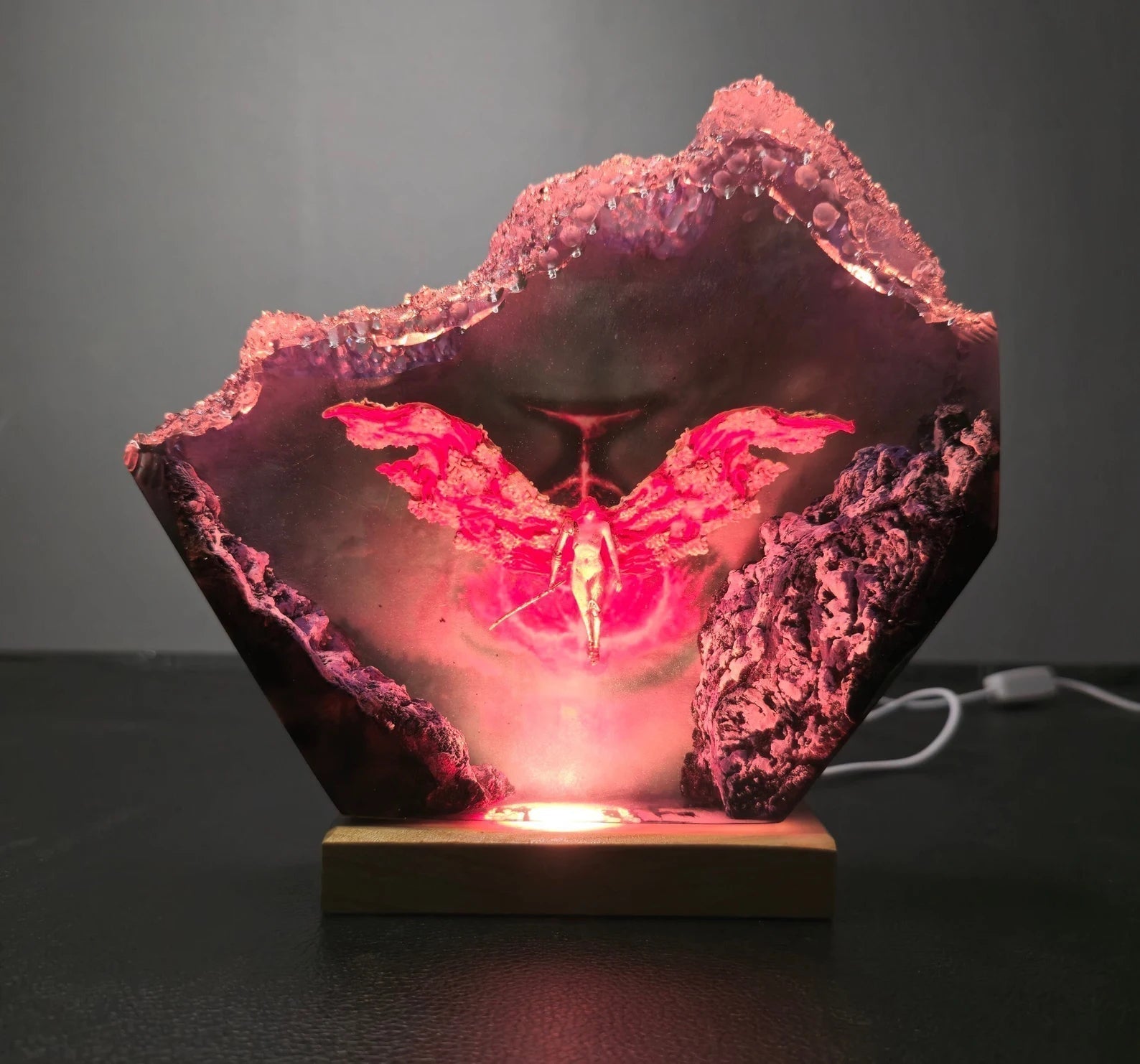 Diese Lampe vereint Kunst, Design und Atmosphäre. Das warme LED-Licht betont die Tiefe des Epoxidharzes und bringt jedes Detail zum Leuchten – perfekt für Wohnzimmer, Arbeitszimmer oder als besonderes Geschenk für Fans und Sammler.