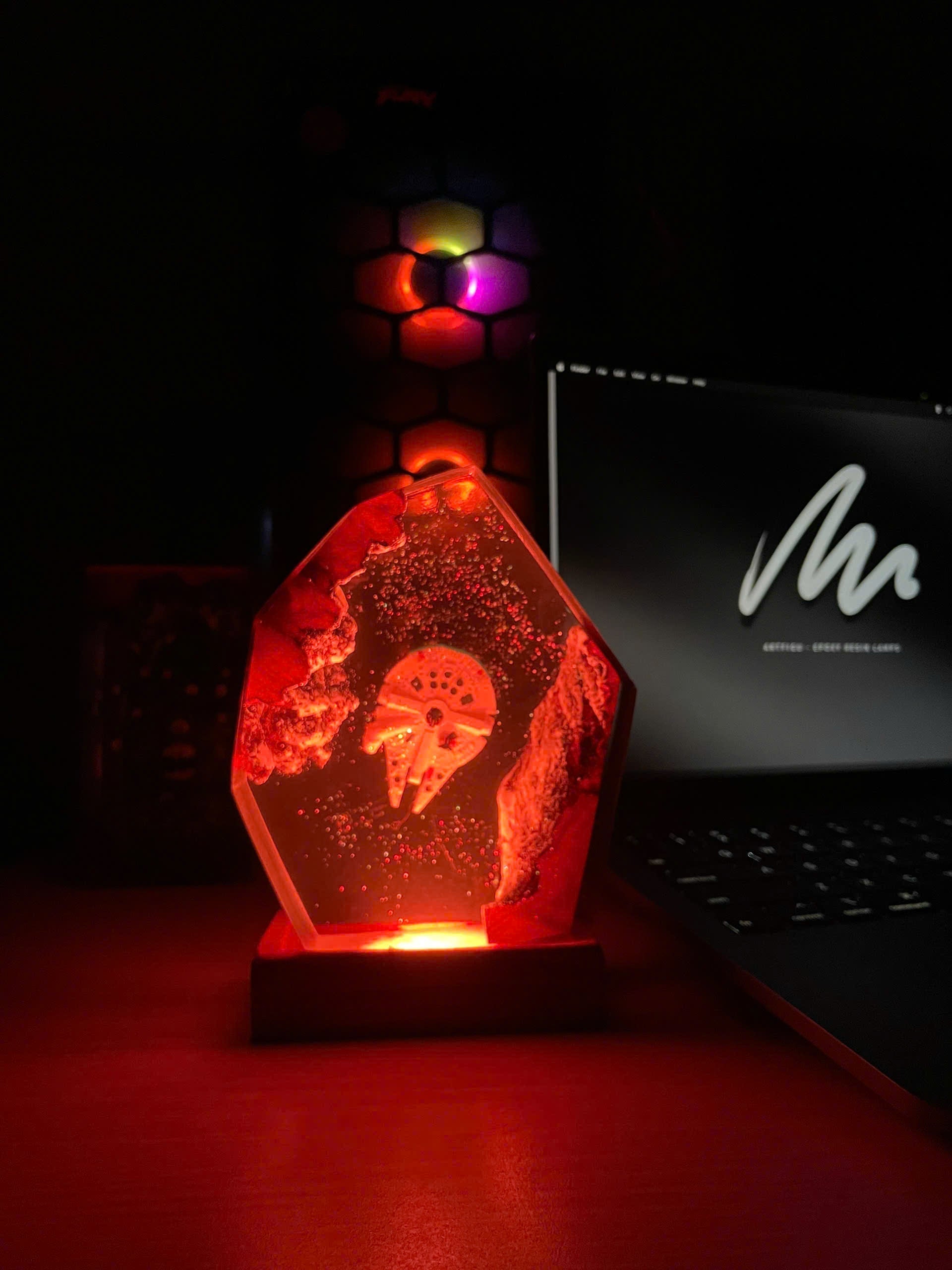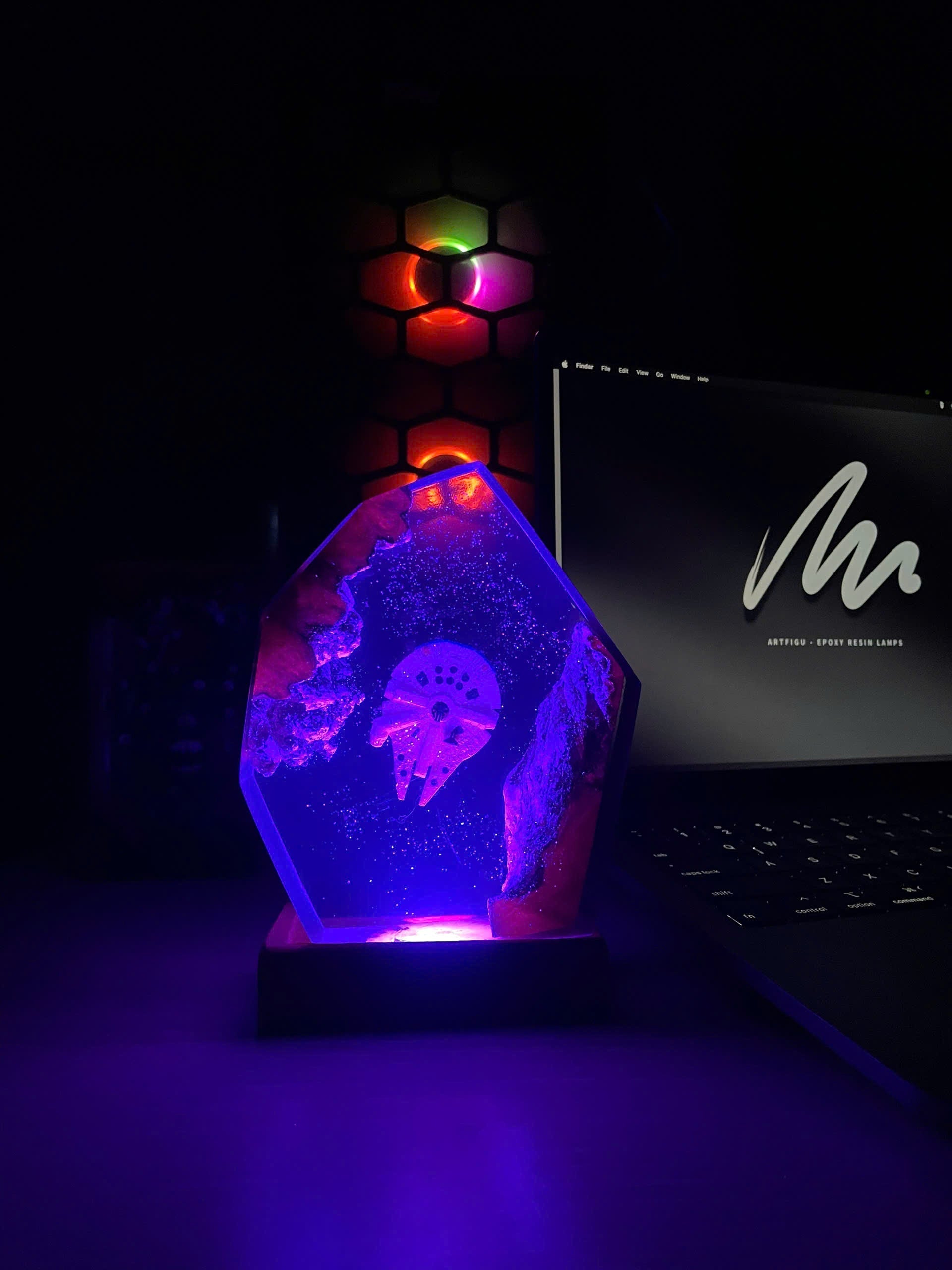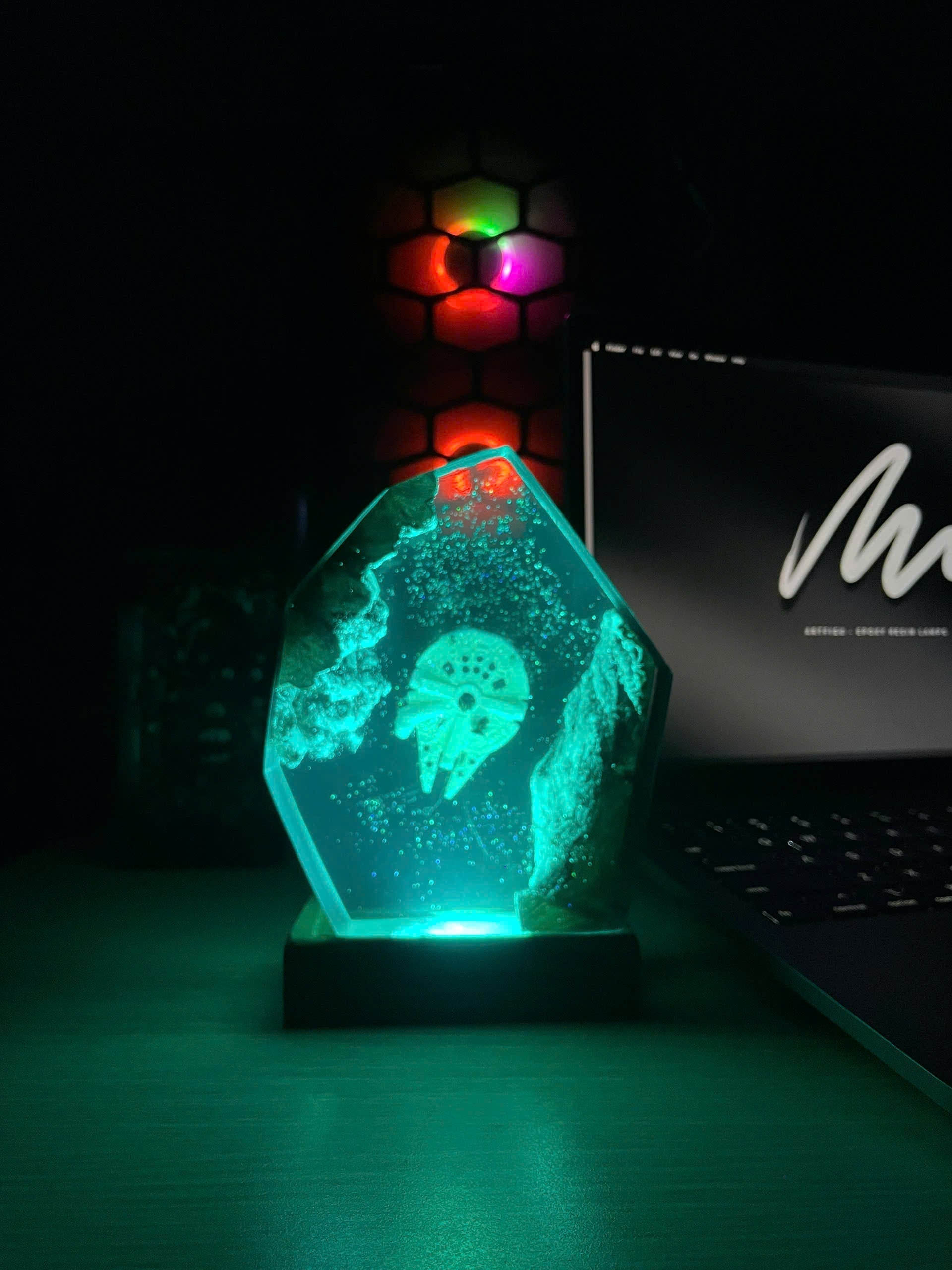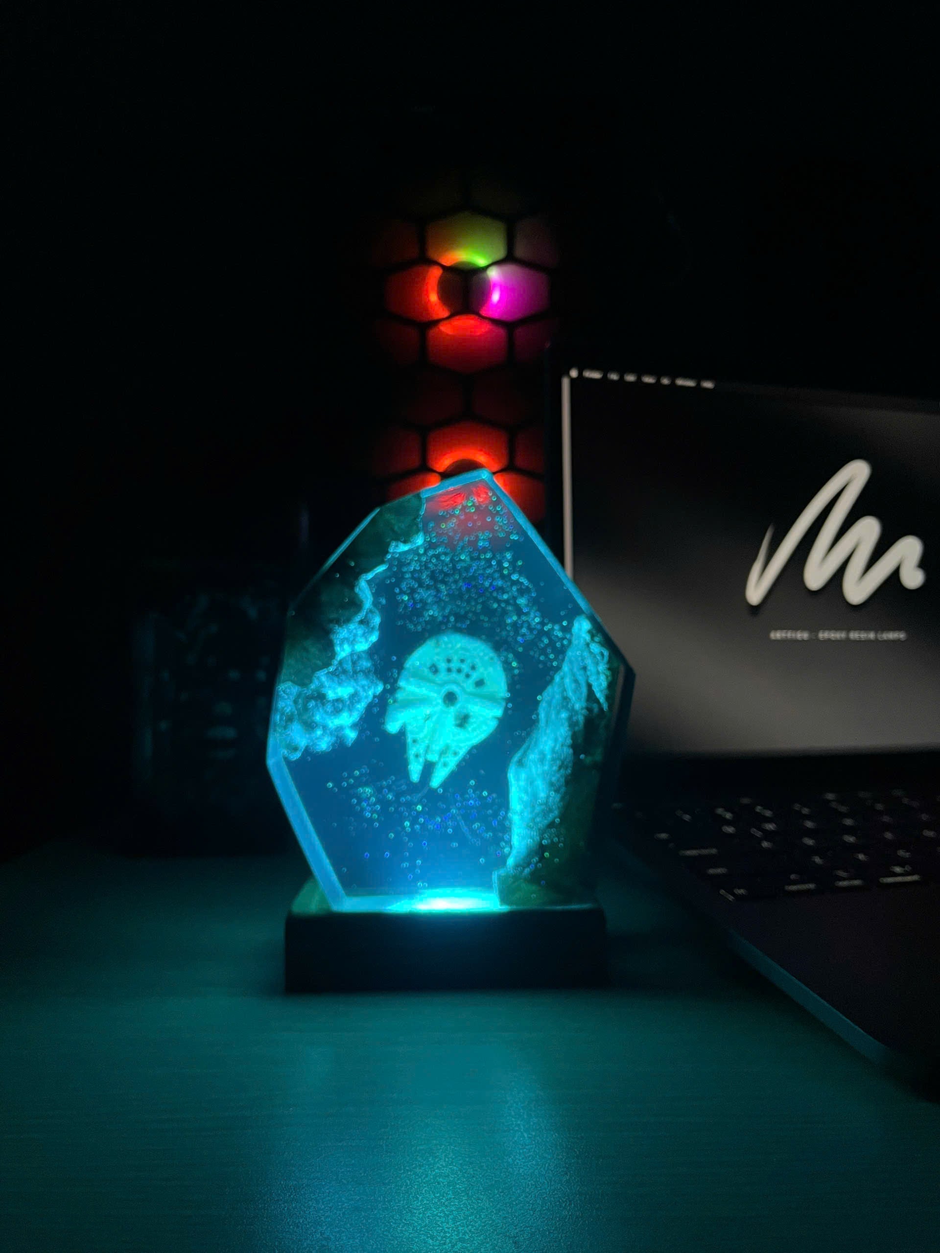 Diese Lampe vereint Kunst, Design und Atmosphäre. Das warme LED-Licht betont die Tiefe des Epoxidharzes und bringt jedes Detail zum Leuchten – perfekt für Wohnzimmer, Arbeitszimmer oder als besonderes Geschenk für Fans und Sammler.