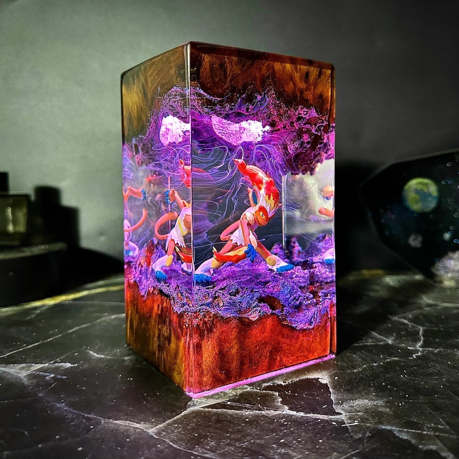 Diese Lampe vereint Kunst, Design und Atmosphäre. Das warme LED-Licht betont die Tiefe des Epoxidharzes und bringt jedes Detail zum Leuchten – perfekt für Wohnzimmer, Arbeitszimmer oder als besonderes Geschenk für Fans und Sammler.