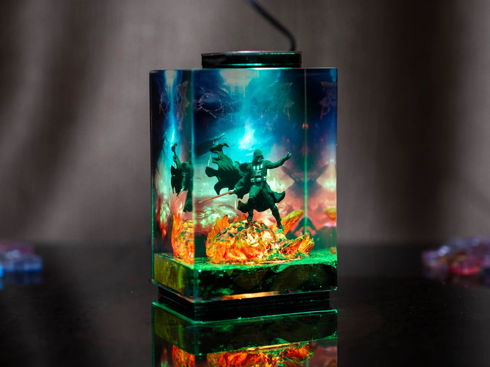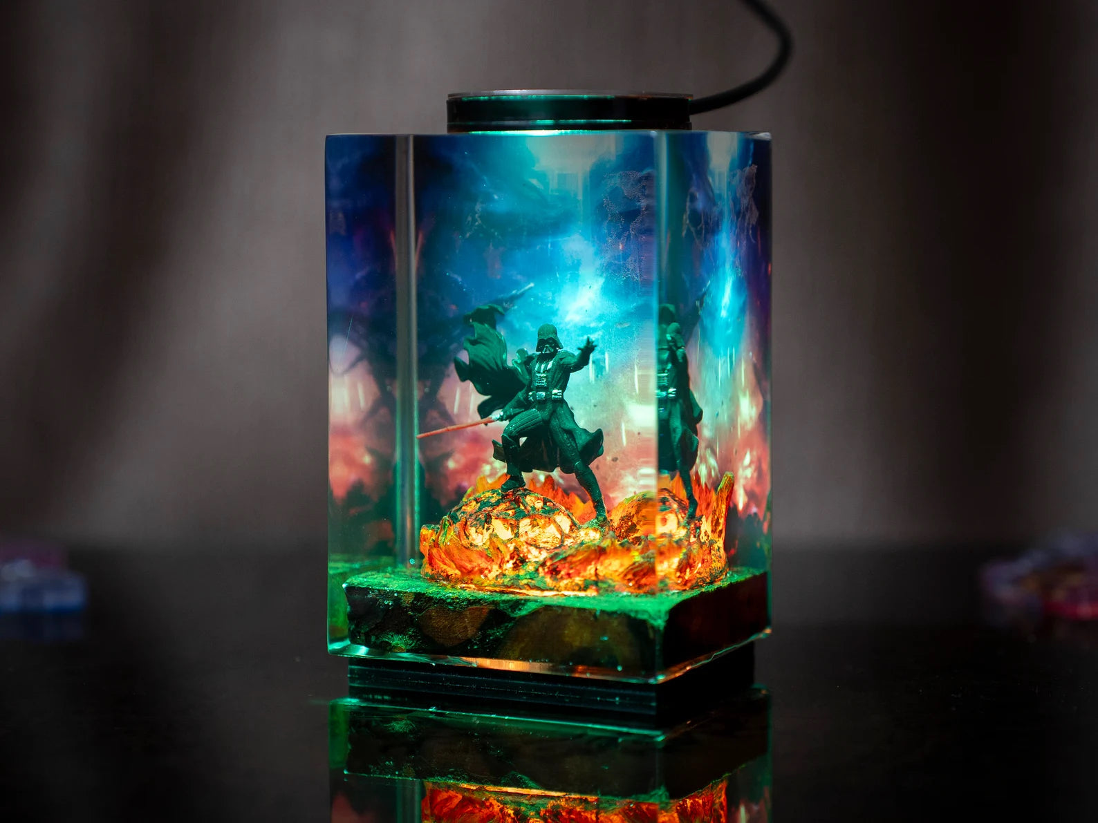 Diese Lampe vereint Kunst, Design und Atmosphäre. Das warme LED-Licht betont die Tiefe des Epoxidharzes und bringt jedes Detail zum Leuchten – perfekt für Wohnzimmer, Arbeitszimmer oder als besonderes Geschenk für Fans und Sammler.