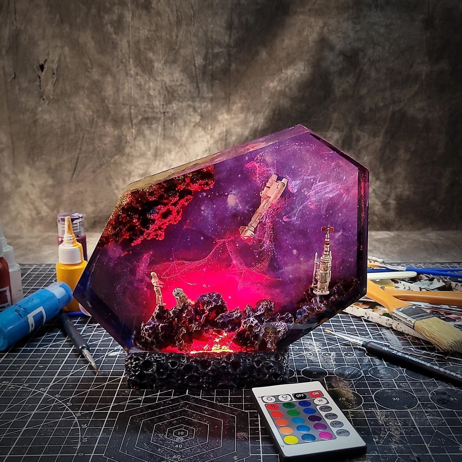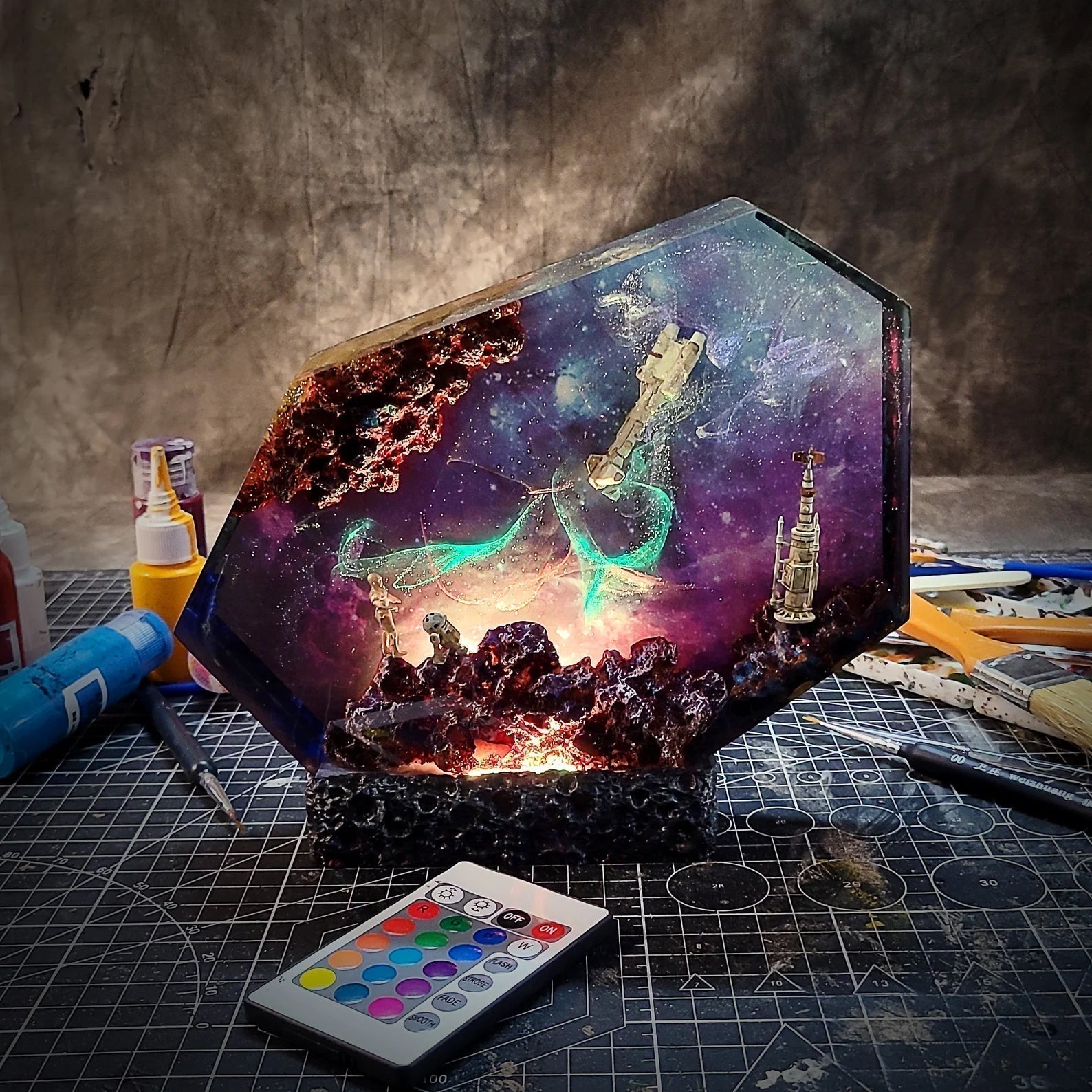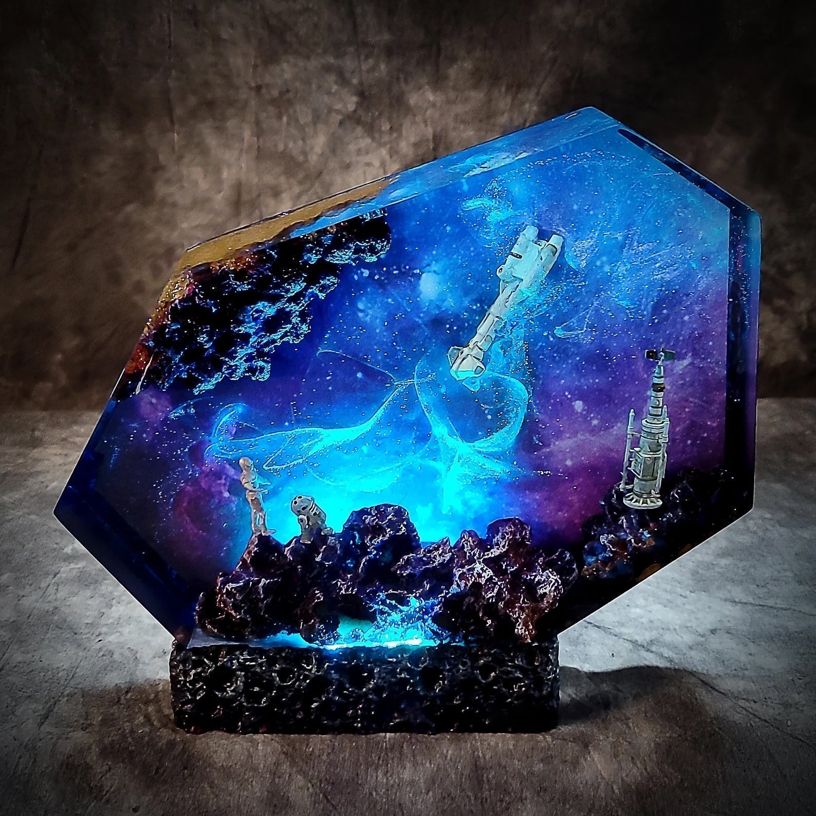 Diese Lampe vereint Kunst, Design und Atmosphäre. Das warme LED-Licht betont die Tiefe des Epoxidharzes und bringt jedes Detail zum Leuchten – perfekt für Wohnzimmer, Arbeitszimmer oder als besonderes Geschenk für Fans und Sammler.