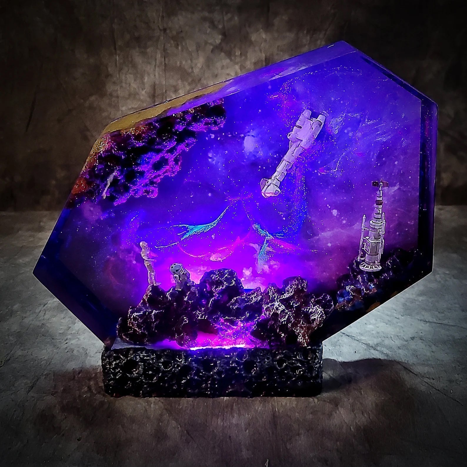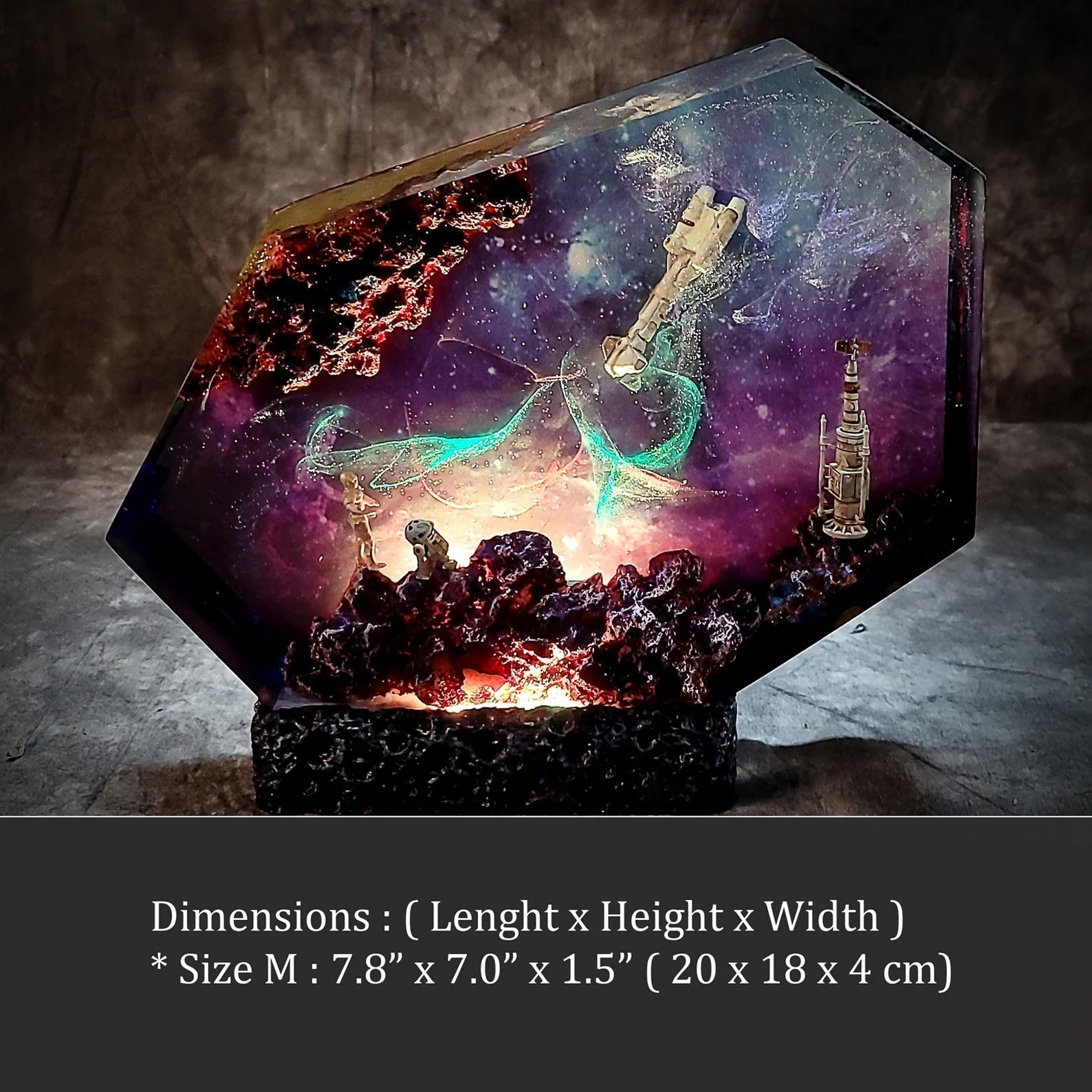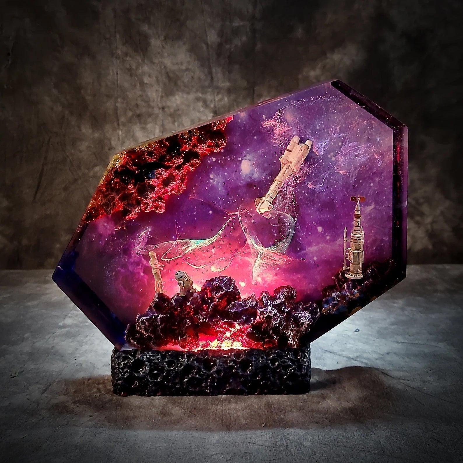 Diese Lampe vereint Kunst, Design und Atmosphäre. Das warme LED-Licht betont die Tiefe des Epoxidharzes und bringt jedes Detail zum Leuchten – perfekt für Wohnzimmer, Arbeitszimmer oder als besonderes Geschenk für Fans und Sammler.