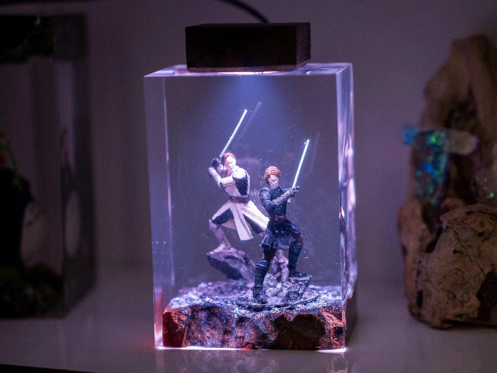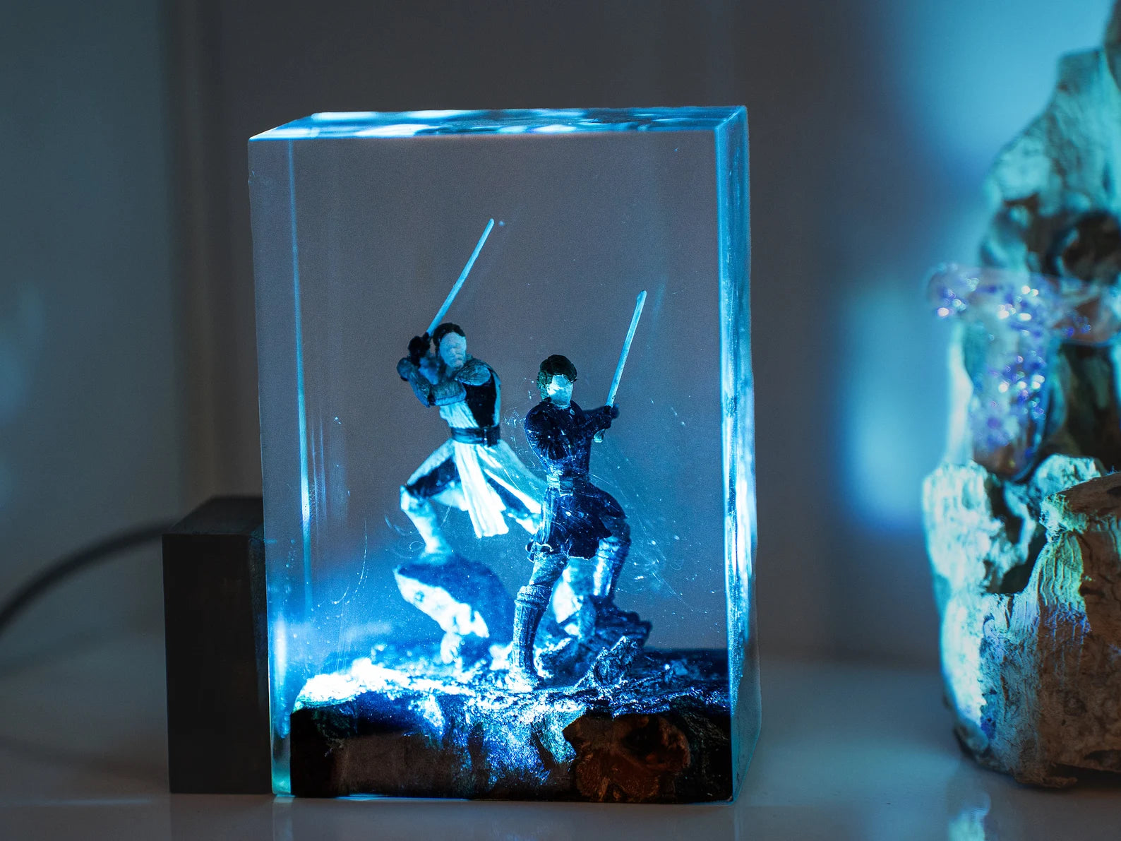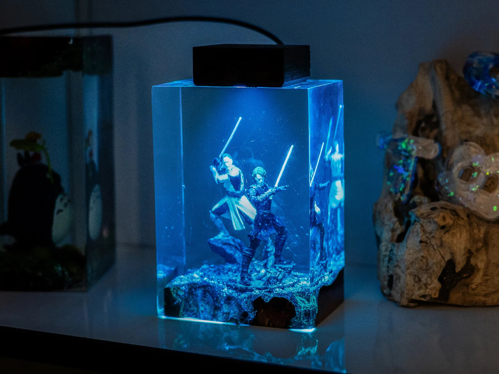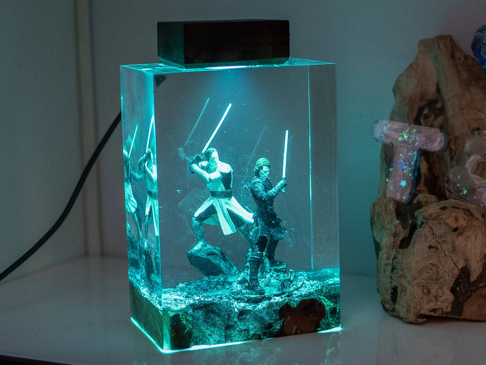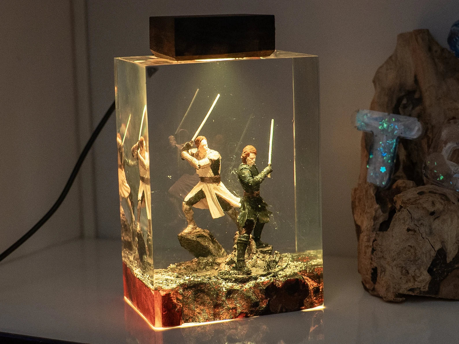 Diese Lampe vereint Kunst, Design und Atmosphäre. Das warme LED-Licht betont die Tiefe des Epoxidharzes und bringt jedes Detail zum Leuchten – perfekt für Wohnzimmer, Arbeitszimmer oder als besonderes Geschenk für Fans und Sammler.
