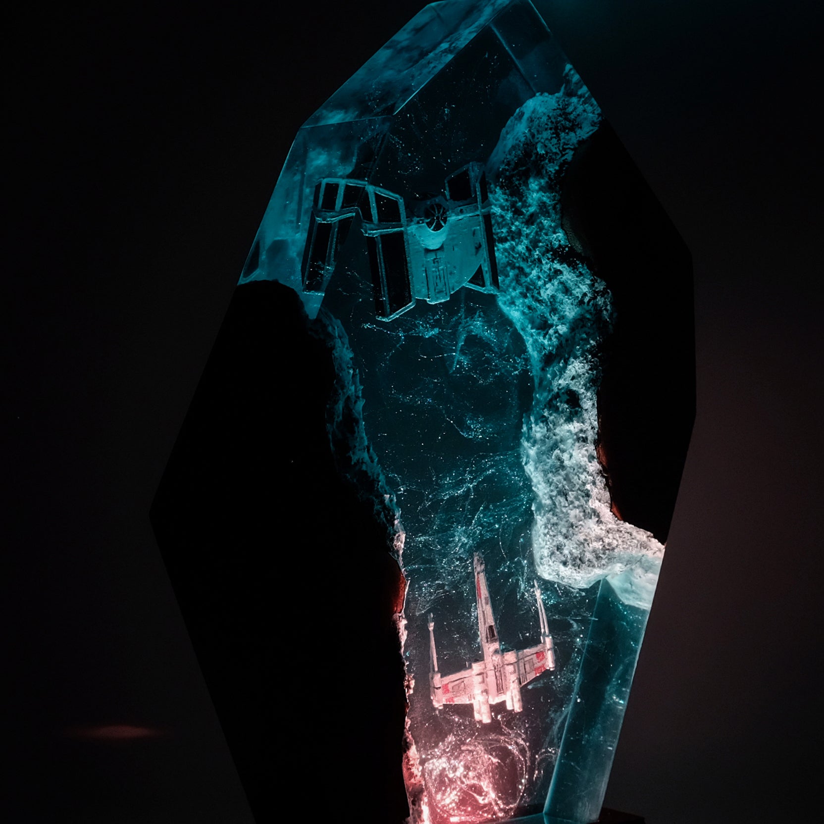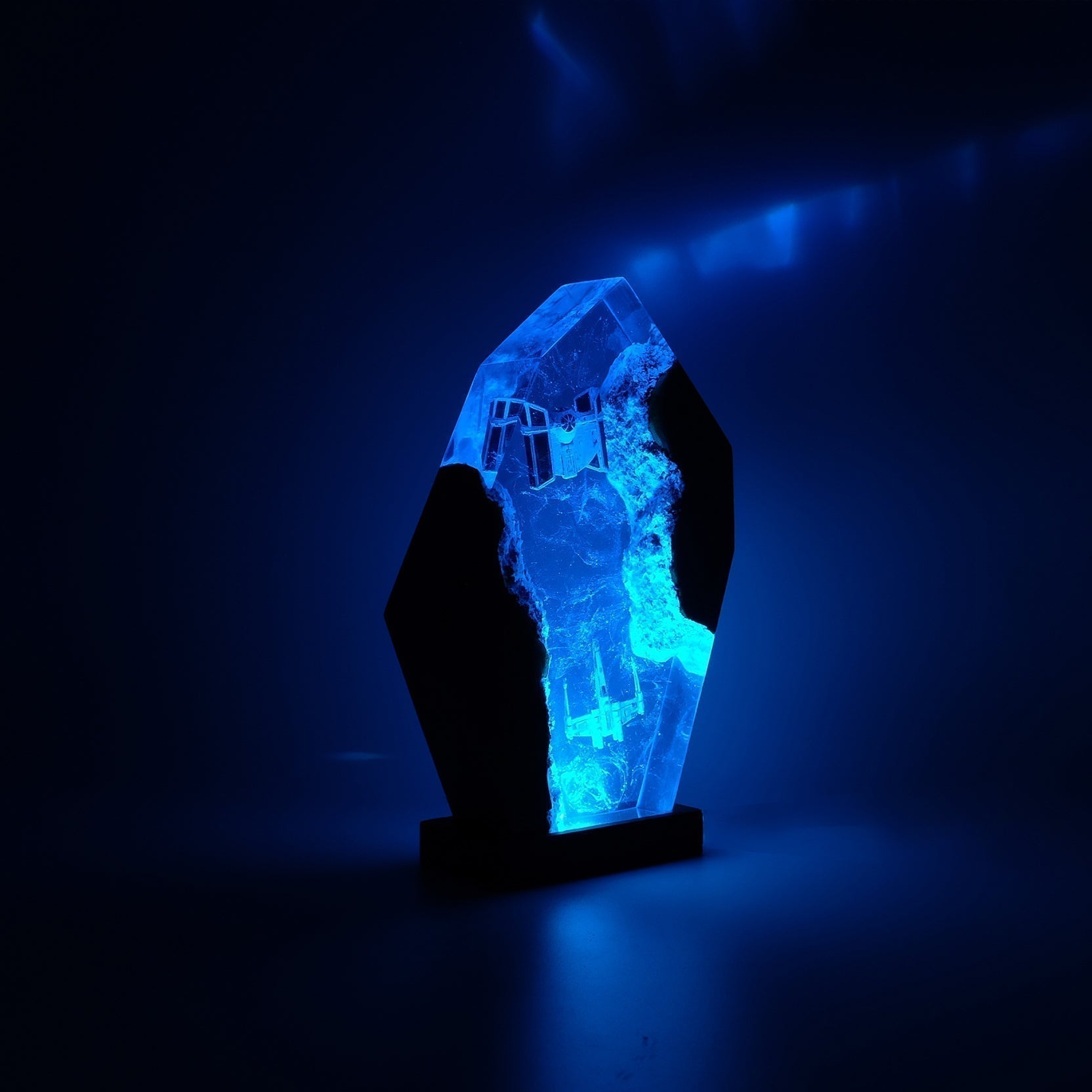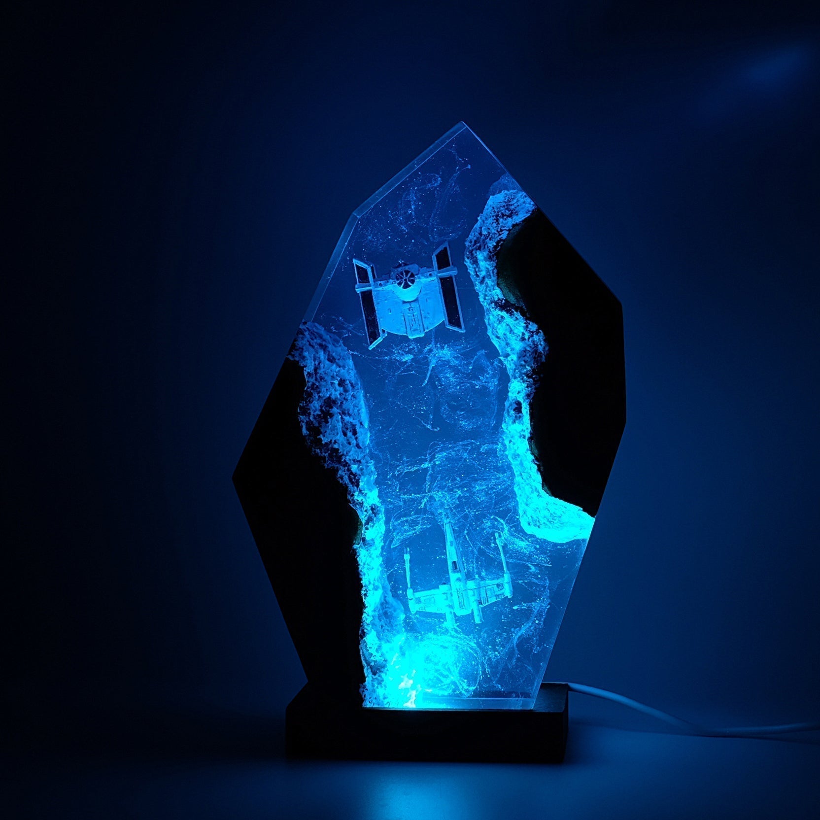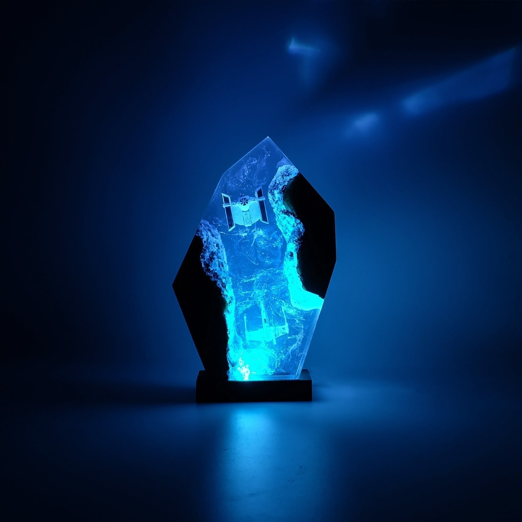 Diese Lampe vereint Kunst, Design und Atmosphäre. Das warme LED-Licht betont die Tiefe des Epoxidharzes und bringt jedes Detail zum Leuchten – perfekt für Wohnzimmer, Arbeitszimmer oder als besonderes Geschenk für Fans und Sammler.